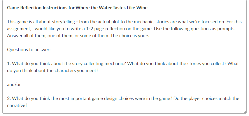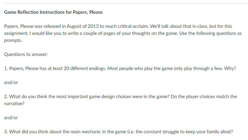 In the beginning, I must admit that I am not the kind of person who really enjoys the game Brothers A Tale of Two Son. Neither the story nor the gameplay seems compelling enough to me. I would state the reason why I am not a fan of this game by answering the first question asked by the professor.