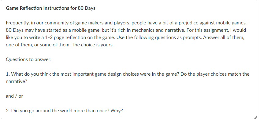 这就是我关于 80 Days 的 Game Design Choice的想法。